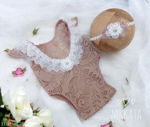 Csipke body és fejpánt szett Újszülött fotózáshoz
