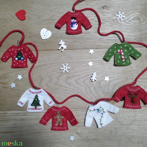Hímzett filc "csúnya pulcsik" karácsonyfa díszek.
