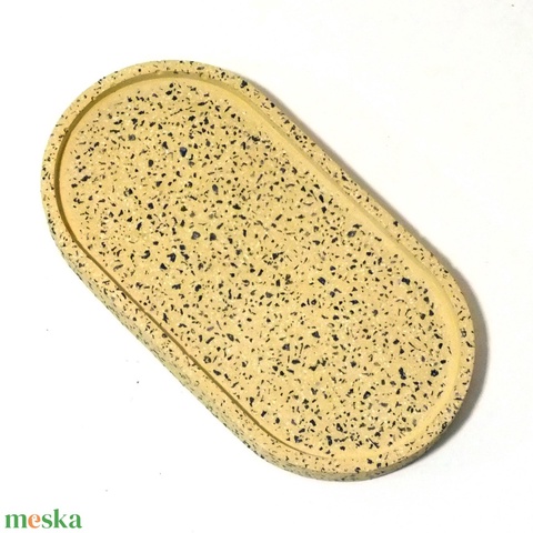 Terrazzo Oval Dekor Betontálca Sárga Modern dekor, indusztriál, Ékszer tálca, fürdőszobai tálca, Gyertya tálca
