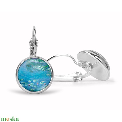 Kék üveglencsés fülbevaló vízililiomos Monet-festménnyel (nemesacél alappal is)