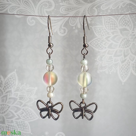 Beakasztós aura kvarcos, pillangós fülbevaló