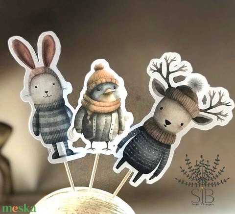 Karácsonyi formavágott erdei állatos ajándékátadó, ünnepi dekoráció