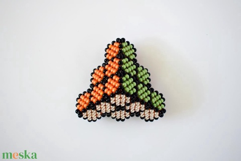 Almazöld-narancs-bézs „lépcsős piramis” fekete ráccsal