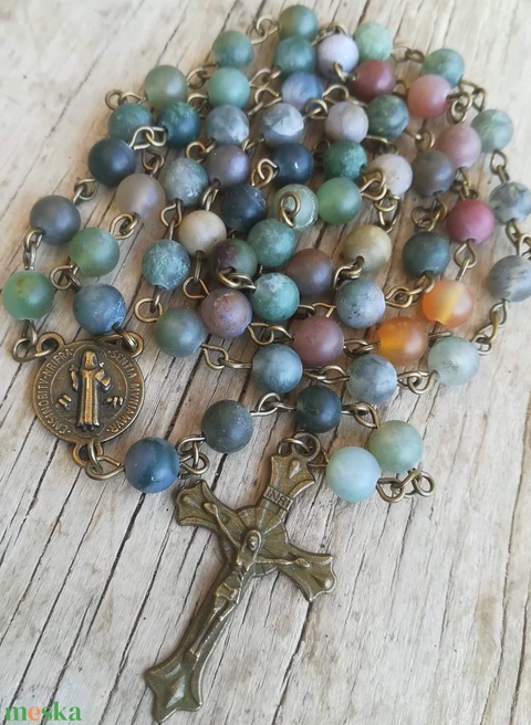 Indiai achát rózsafüzér- Szent Benedek medállal
