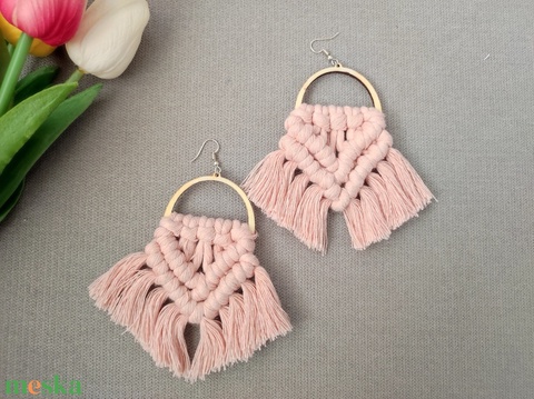 Nagy rózsaszín makramé fülbevaló