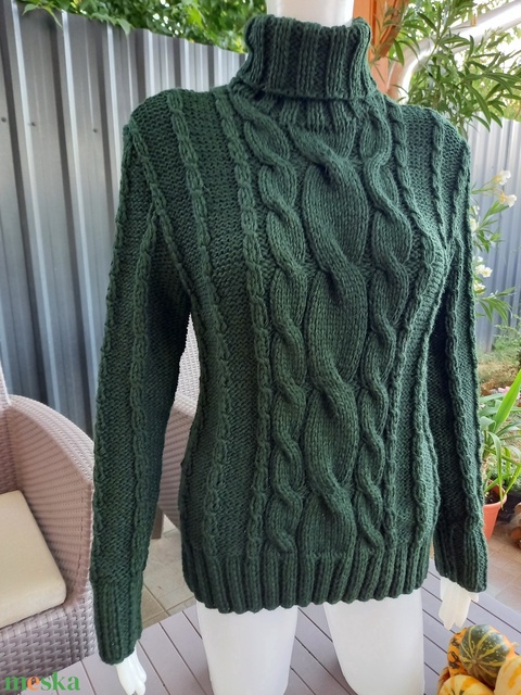 Kézzel kötött sötét zöld női pulóver