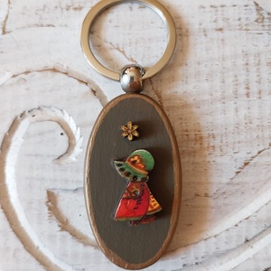 - Anyaga: festék, lakk, kulcstartó alap, lézervágott fa figura