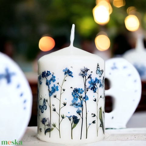 Nefelejcses 1 db, alkalmi, esküvői dísz gyertyák- gyertyában rét szett