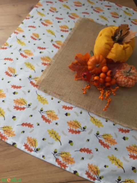 Őszi terítő, asztalközép - őszi levelek, fehér alapon