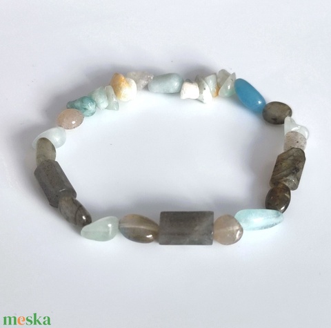 Labradorit - akvamarin - amazonit ásványkarkötő