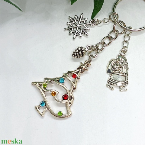 Csillogó strasszos karácsonyfa medálos kulcstartó