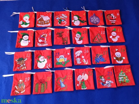 Hímzett adventi naptár, 24 db kis hímzett zsák