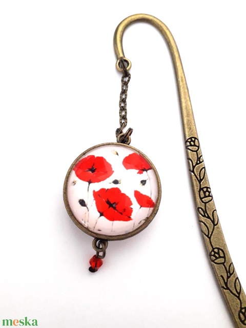 - Anyaga: könyvjelző alap, lánc, üveglencse, medál alap, piros, pipacsos, könyvmoly, könyves, gyöngy
