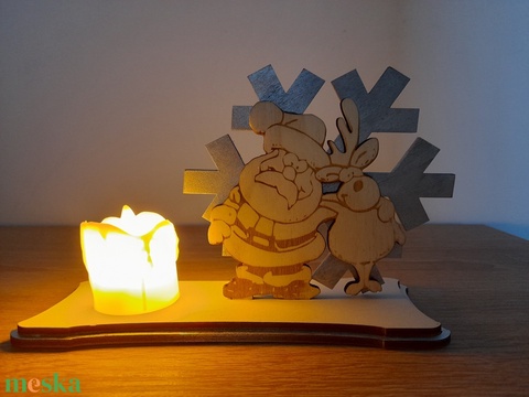 Mikulás és rudolf téli karácsonyi mécsestartó