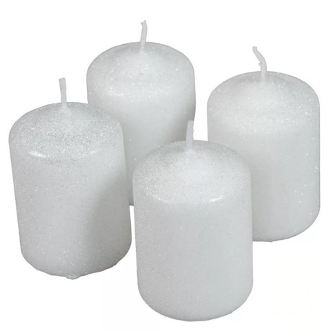 Bársony glitter henger gyertya 50x75 mm - fehér szett