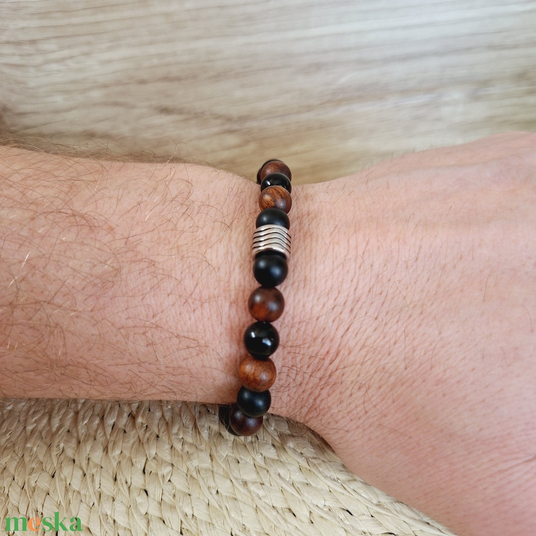 Illatos szantálfa és ónix ásvány karkötő