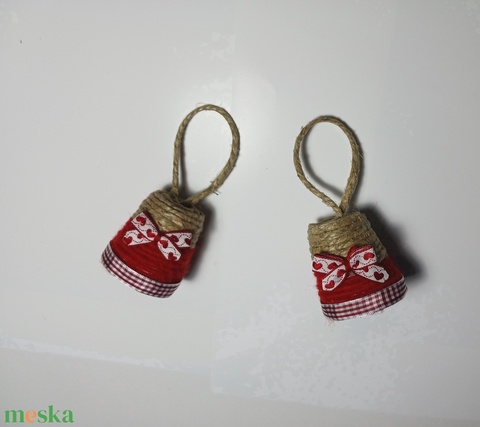 Karácsonyfadísz, natúr-piros-fehér, harang, 2 db