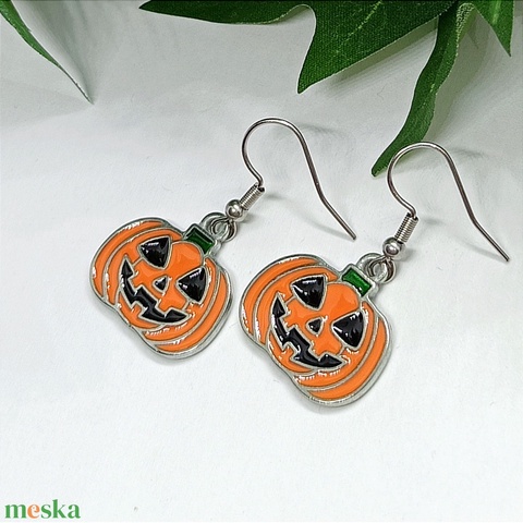 Narancssárga Halloween tök medálos, lógós fülbevaló