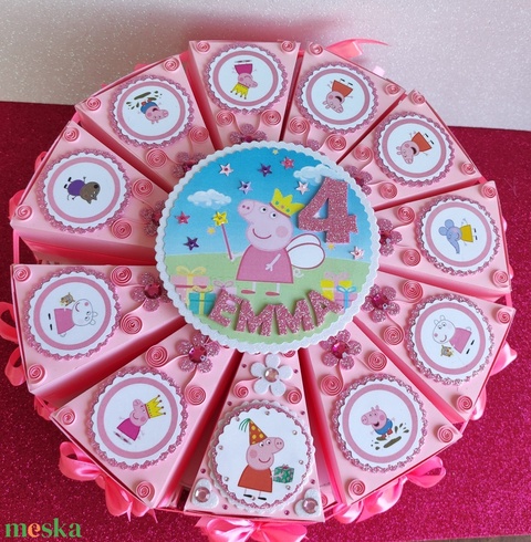 Papírtorta Pepa malac ajándék átadó torta doboz szeletek