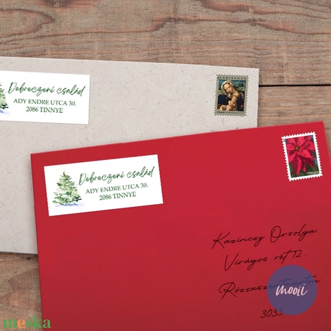 Karácsonyi matrica csomag - feladó címke, családi matrica karácsonyi levelezéshez akvarell fenyő mintával