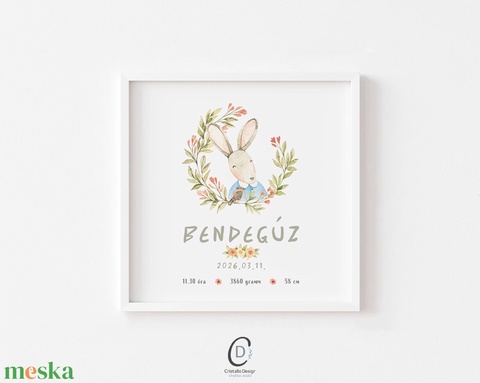 Egyedi, névre szóló megérkeztem poszter, imádnivaló nyuszival illusztrált babaszoba falikép. Remek ajándék újszülötteknek, korházból hazajövetelre, névnapra, keresztelőre, karácsonyra!