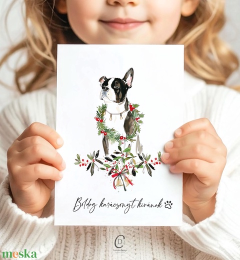 Kutyás karácsonyi képeslap, ünnepi üdvözlőlap, ajándékkísérő
