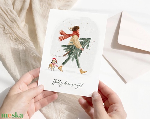 Karácsonyi képeslap, kutyás üdvözlőlap, ajándékkísérő