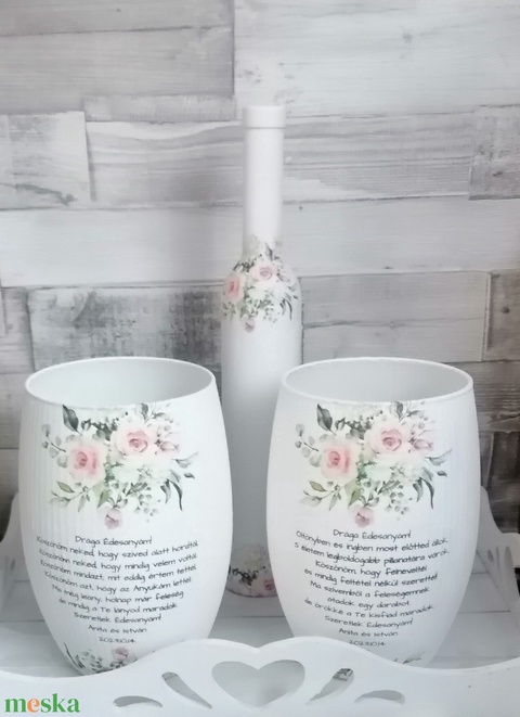 “Gyönyörű üvegeket kaptam, jó szívvel ajánlom az eladó hölgyet, kedves és gyorsan el is készítette a szülőköszöntőket! ”