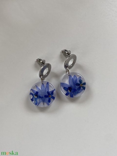 Búzavirág és nefelejcs,kerek-műgyanta,nemesacél fülbevaló