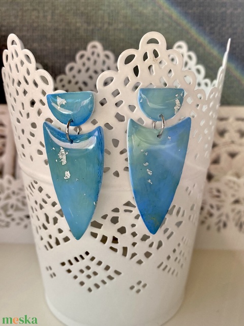 Kék színátmenetes,ezüst pelyhes fülbevaló