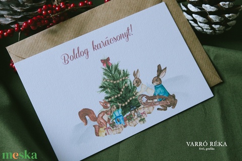 Festett erdei állatos karácsonyi képeslap