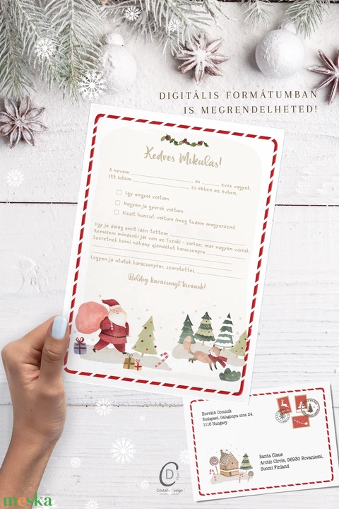 Rendelhetsz hozzáillő újrahasznosított papírból készült a Mikulásnak előre megcímzett borítékot is.