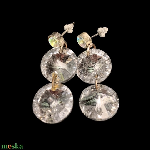 Régi hosszú Vintage strassz fülbevaló, régi ékszer az 1970/80-as évekből, gyönyörű retro ékszer fülbevaló