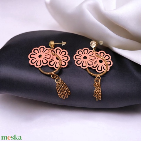 Bohém hosszú Vintage fülbevaló, régi ékszer az 1970/80-as évekből, gyönyörű retro ékszer fülbevaló, virág fülbevaló