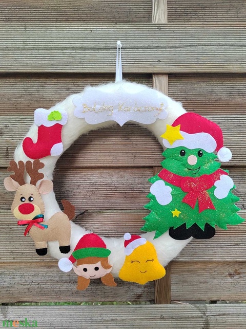 - Anyaga: szalma koszorúalap, filc, szatén szalag, csillámpor, vatelin, műszőrme