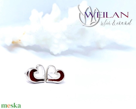my Valentine - Szívdobbanás ezüst tűzzománc fülbevaló, piros