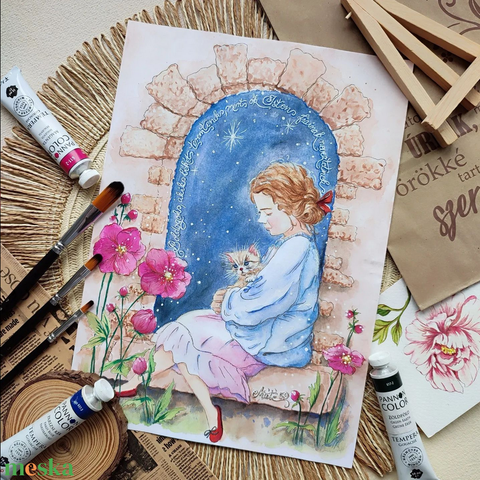 "Boldogok a békét teremtők" - idézetes akvarell festmény papíron