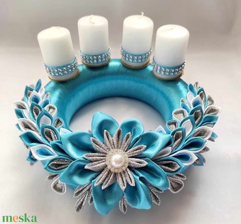 - Anyaga: szaténszalag, hungarocell karika, gyöngy, gyertya