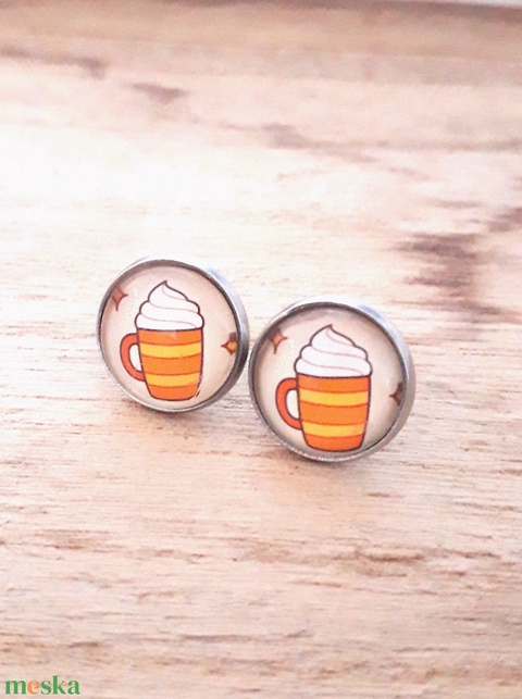 Sütőtökös fűszeres latte nemesacél fülbevaló őszi napfény leveles falevél színes őszi