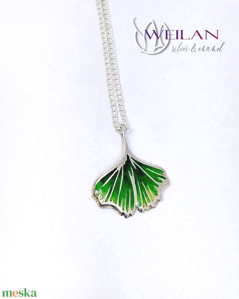 Leaf - Ginkgo Biloba - ezüst tűzzománc medál, ezüst láncon, sárgászöld