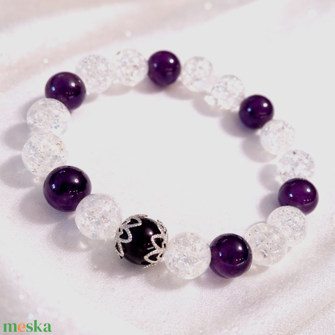 Ametiszt és hegyikristály ásvány karkötő