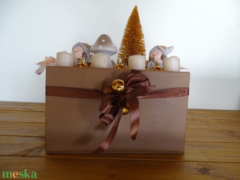 porcelán, gyertya, fenyőfa, szatén, szalag