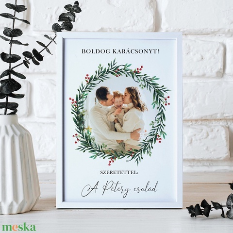 Karácsonyi koszorú grafika dekor A/4-es méretben (digitális kép vagy fotópapírra nyomtatva, keretezve) fekete