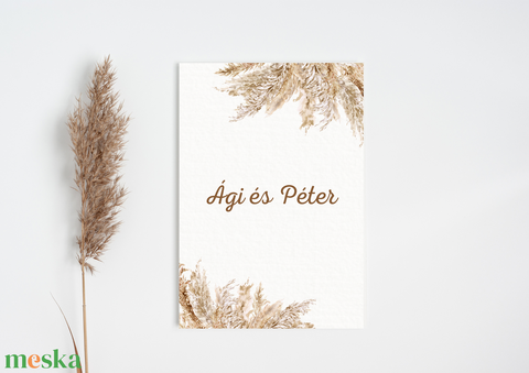 Fehér elegáns akvarell virágos , pampafüves esküvői meghívó többféle