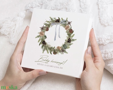 Natúr termésekkel, növényekkel illusztrált trendi karácsonyi képeslappal egy kis varázslatot csempészhetsz az ünnepi készülődés pillanataiba. Remek választás az e-mailek helyett, ha valami különlegesebbet szeretnél küldeni, mint egy egyszerű jókívánság. Lepd meg a szüleidet, nagyszüleidet, barátaidat régen nem látott szeretteidet. Az üdvözlőlap kinyitható, négyzet alakú két oldalt színesen nyomtatott prémium minőségű, matt hófehér papírra készül.