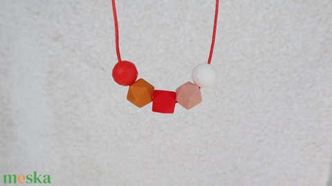 szilikon gyöngy, szatén zsinór, műanyag csat
