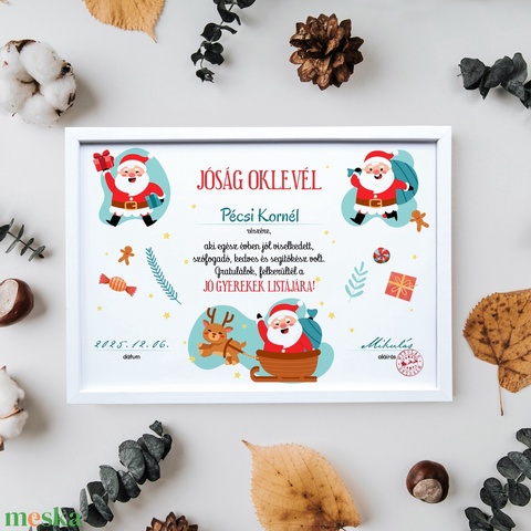 Jóság oklevél a Mikulástól - névre szólóan (digitális kép vagy fotópapírra nyomtatva, vagy keretezve)