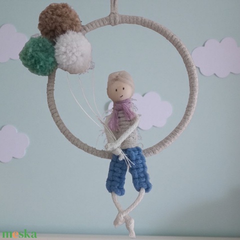 - Anyaga: makramé fonal, gyapjú, fa golyó, fém karika