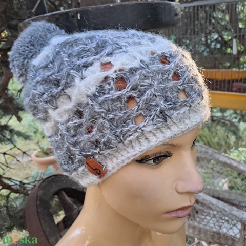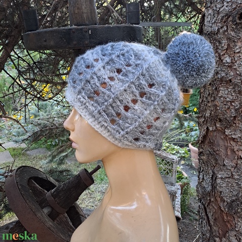 Női sapka, áttört, relief, horgolt, kötött: Pompom