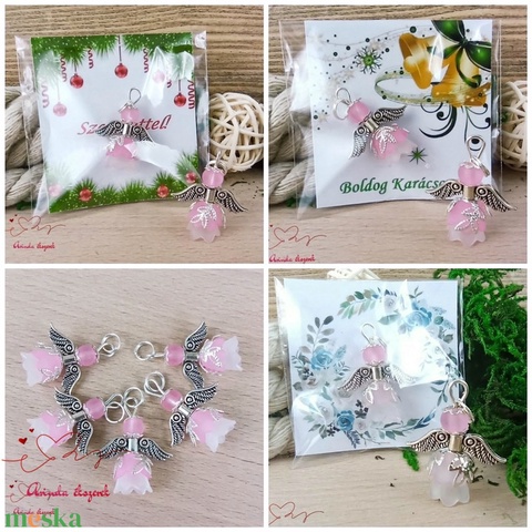 Angyalka medál rózsaszín 5 db-os csomagban ajándékkártyával karácsonyi apróság kollégának osztálytársnak vendégnek